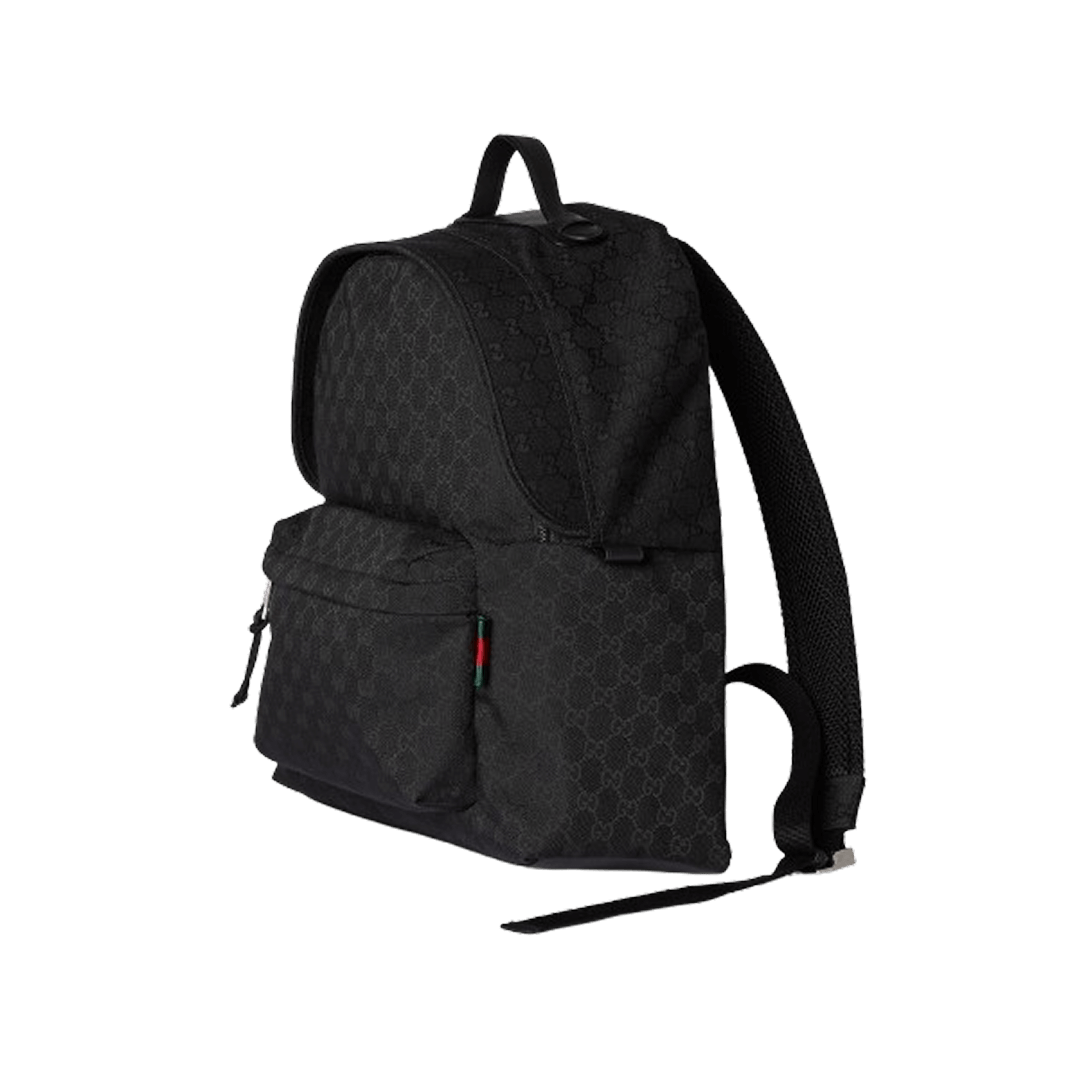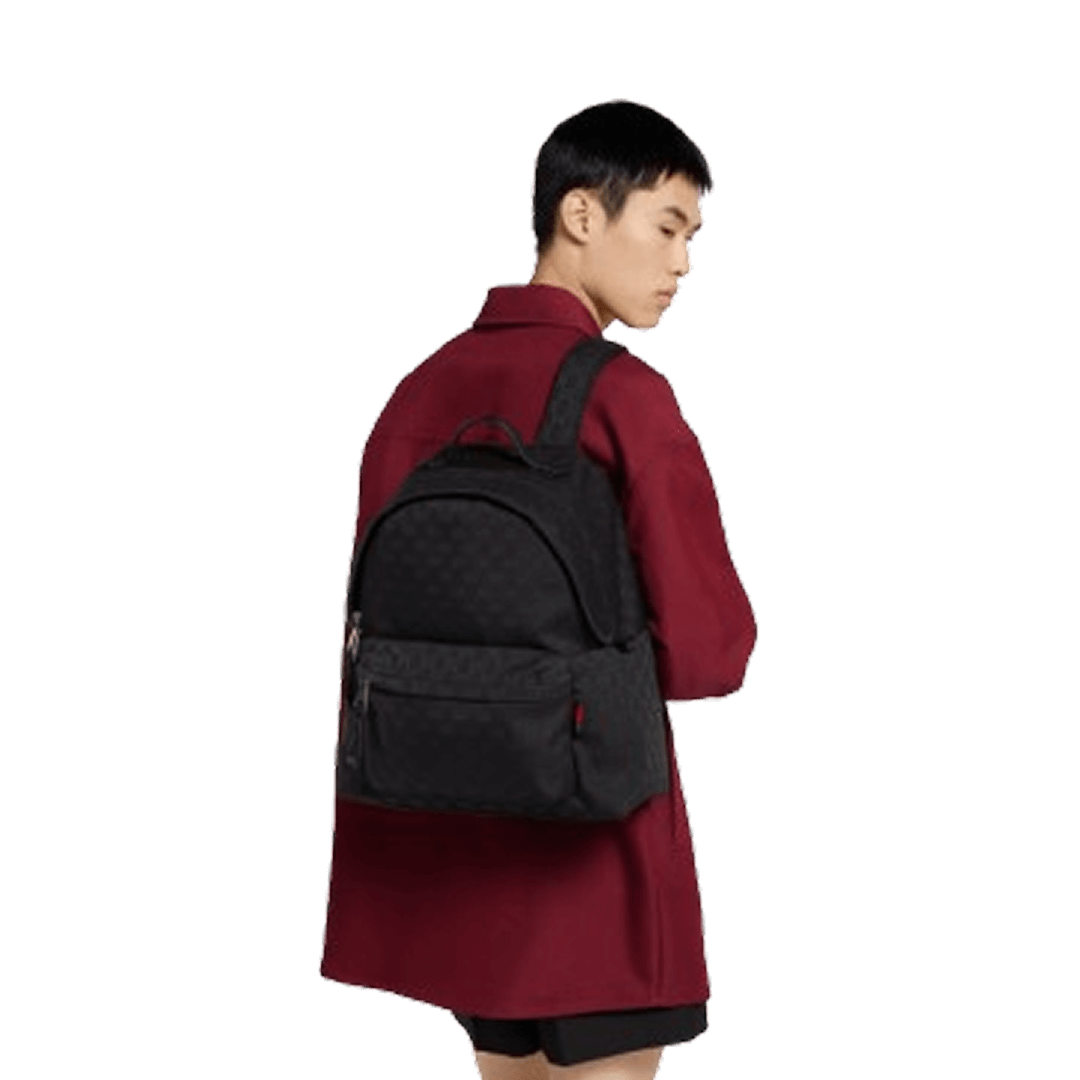 In the Spring Summer 2025 collection, softly-structured men’s bags combine craftsmanship and functionality with a smooth texture and practical closures. This Gucci GG Canvas Medium Backpack appears in all black GG canvas.
