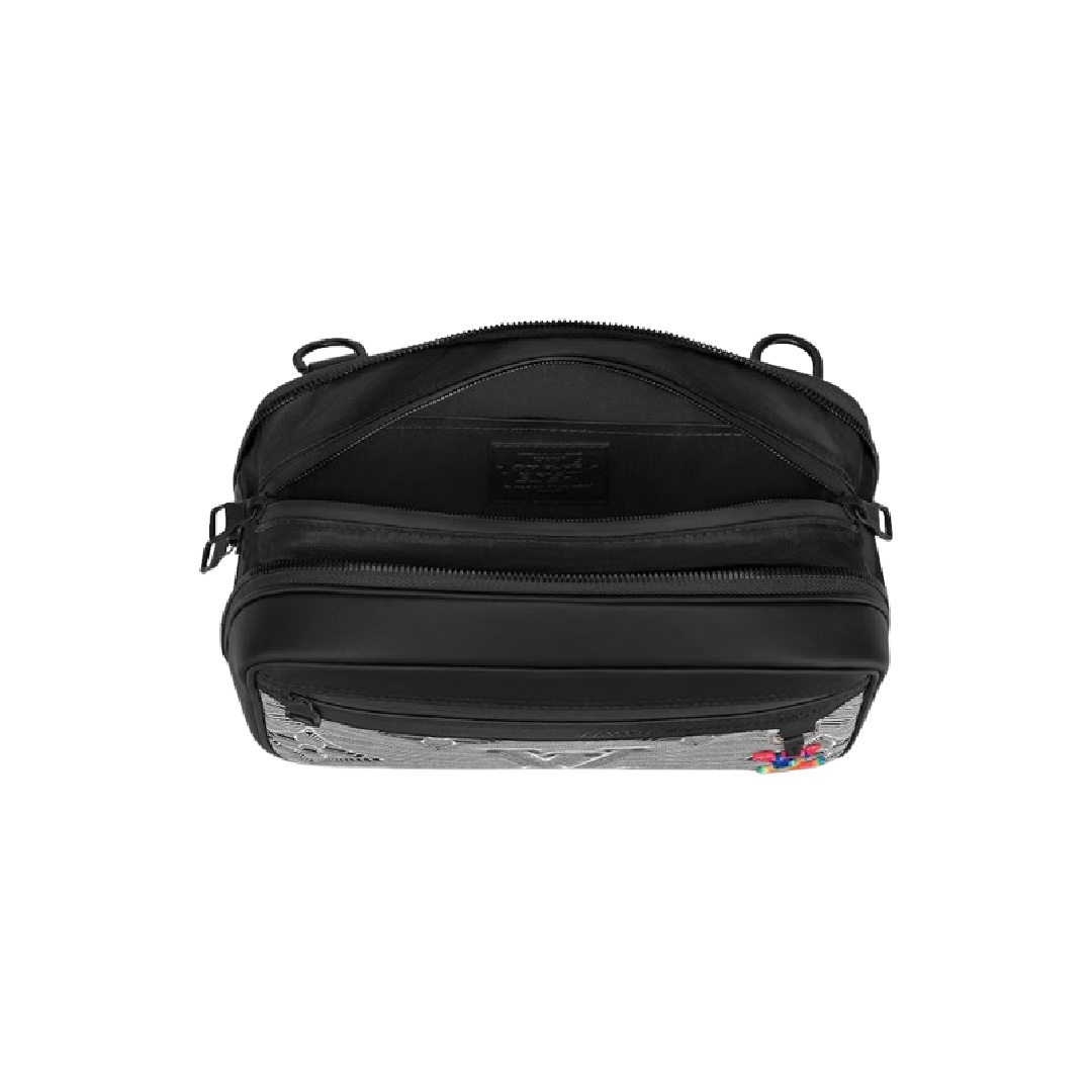 The Louis Vuitton messenger bag for men in black and Gray color features a smart zippered expansion system, providing extra storage when needed while maintaining its sleek, low-profile design when closed.