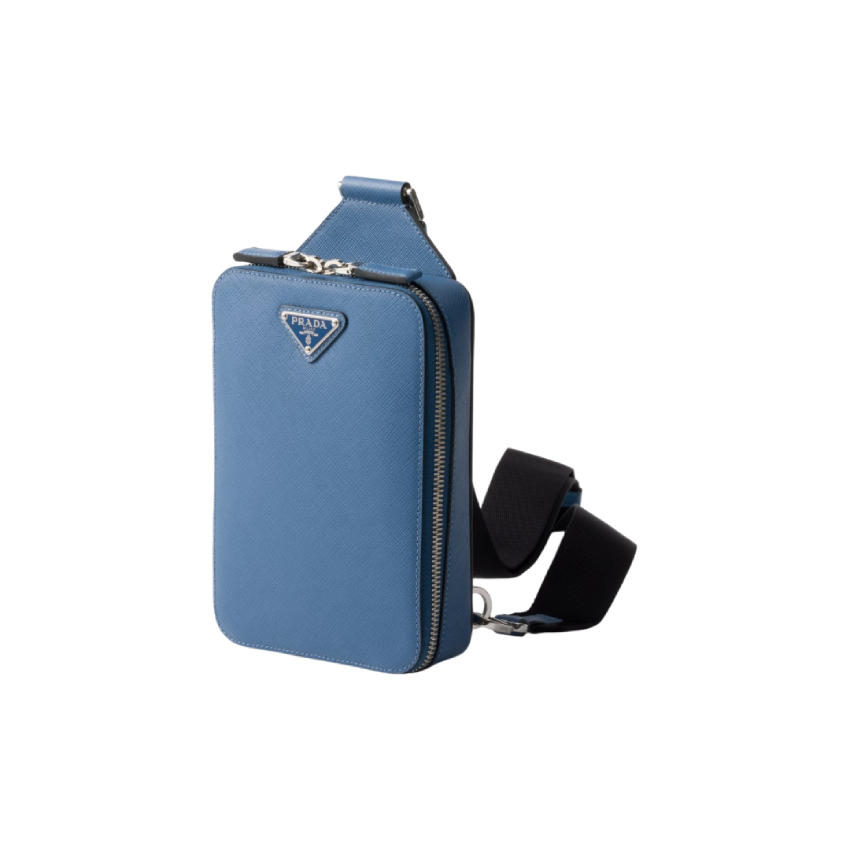 This elegant Saffiano leather shoulder bag with a handle, shoulder strap, and two zipper pockets has a sleek silhouette.
